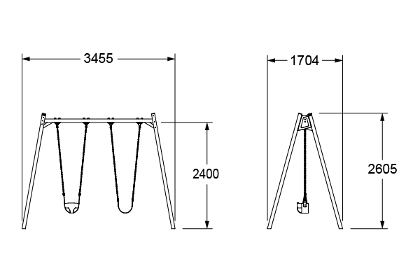 The most popular A-Frame swing design with the unique Moduplay fully welded top beam for unbeatable strength and durability. Your choice of seats available. The dimensions shown in the table are maximums.