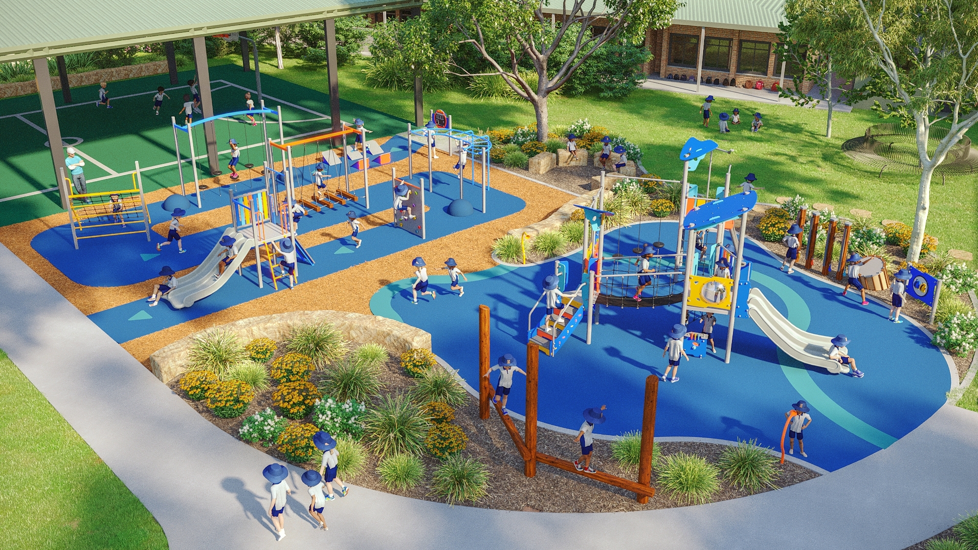 Recess Retreat is a vibrant playspace built for the fast pace of school life. Designed to handle the busy energy of break times, it gives children room to run, climb, and connect all at once.